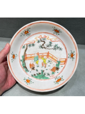 红绿彩婴戏图盘