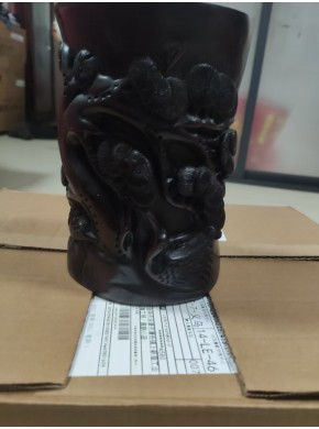 清乾隆高浮雕小叶子檀文房笔筒