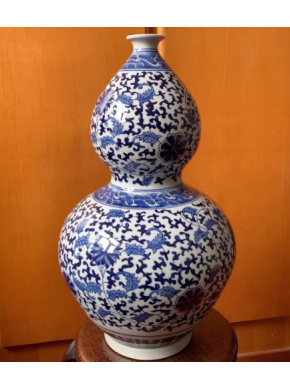 雍正年制青花缠枝莲纹手绘葫芦瓶