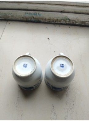 青花缠枝莲纹带盖茶杯一对