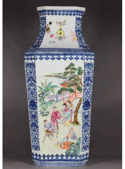 藏品名称:粉彩人物故事四方八面镶具瓶 参考价格:380000.00 藏品规格: 藏品款识: 藏品类别:微拍