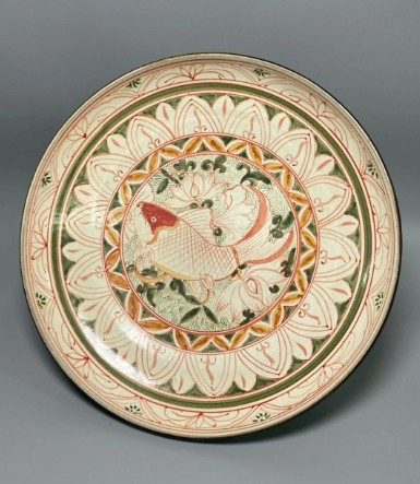 磁州窑红绿彩鱼草纹盘