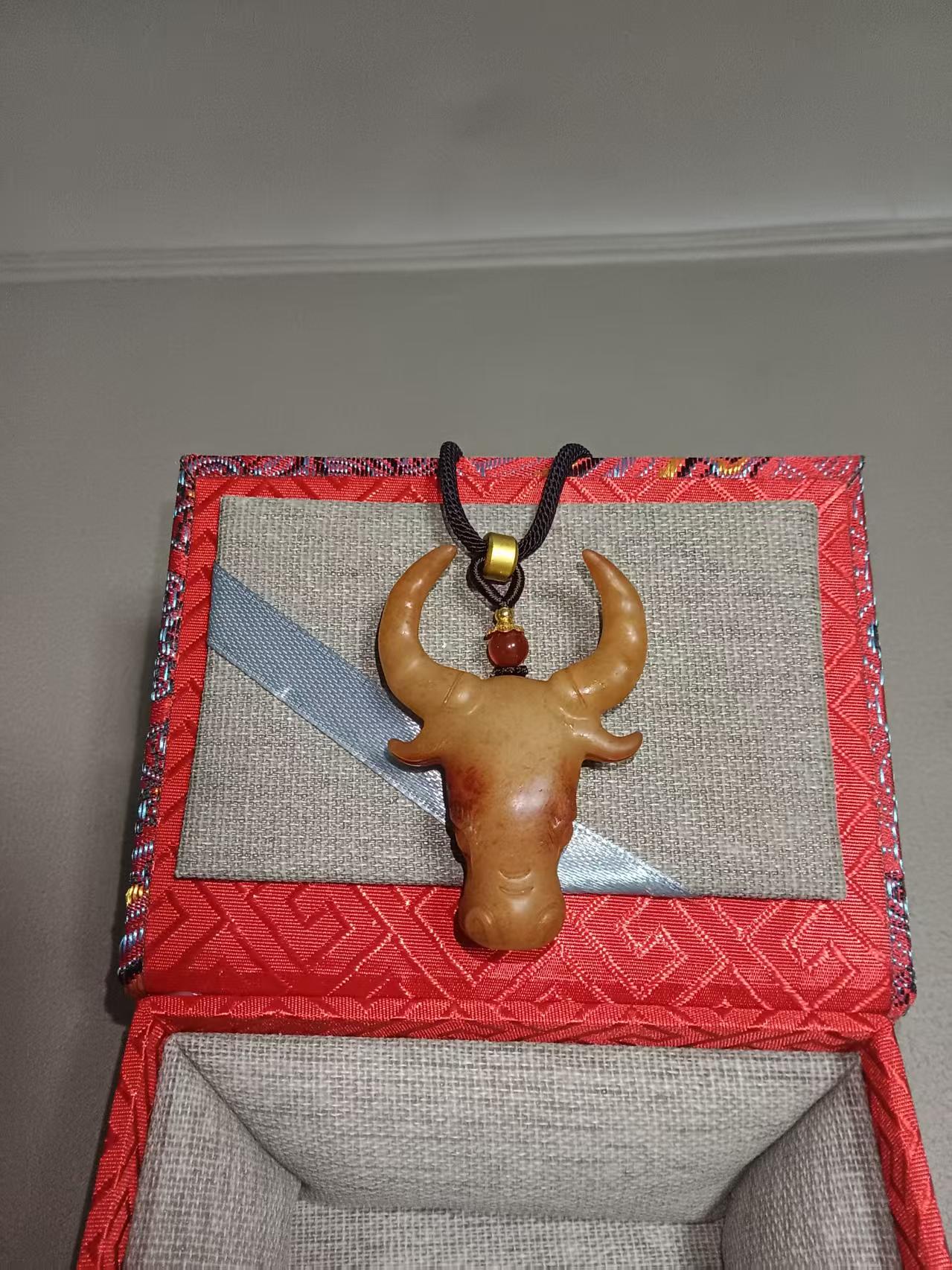 藏品名称:牛气冲天天然和田玉雕刻挂坠 参考价格:188000.00 藏品规格: 藏品款识:牛气冲天天然和田玉雕刻挂坠 藏品类别:玉器
