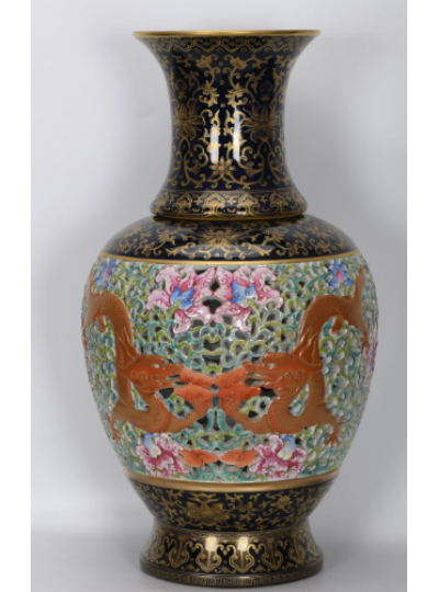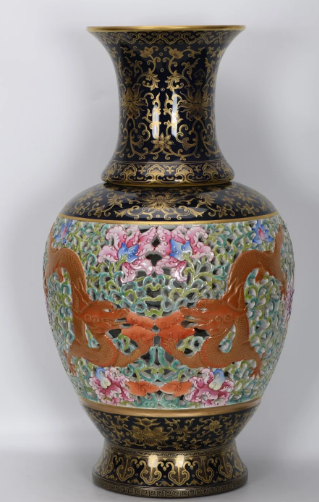 藏品名称:珐琅彩祭蓝描金镂空转心瓶 参考价格:560000.00 藏品规格: 藏品款识: 藏品类别:微拍