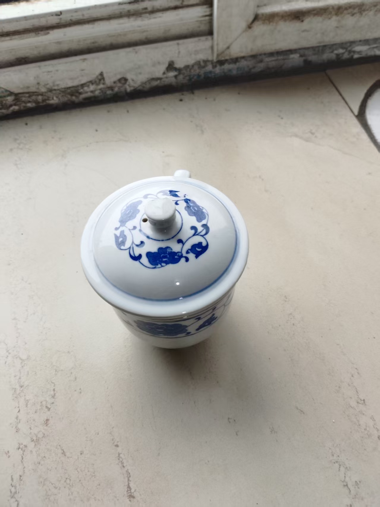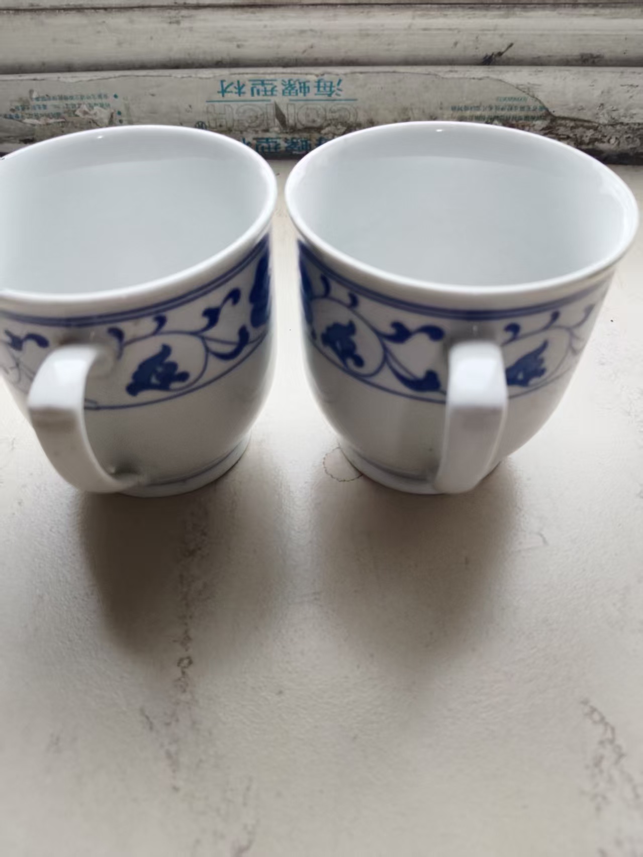 青花缠枝莲纹带盖茶杯一对