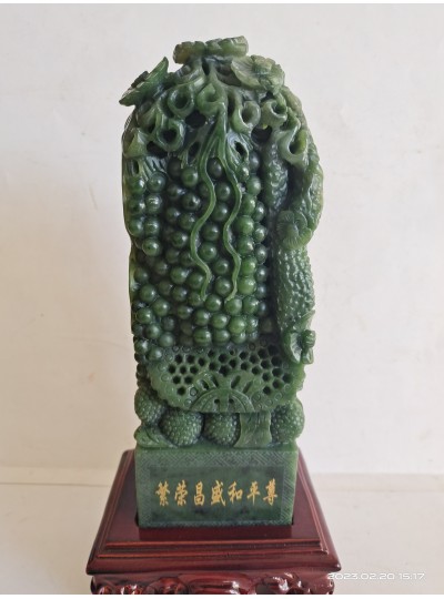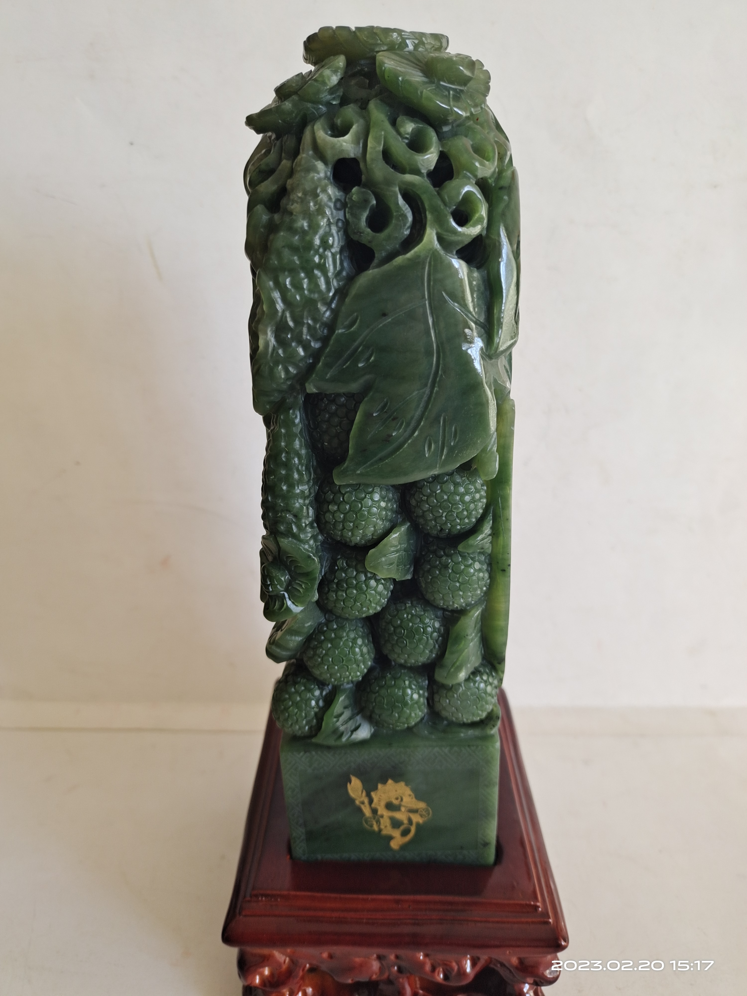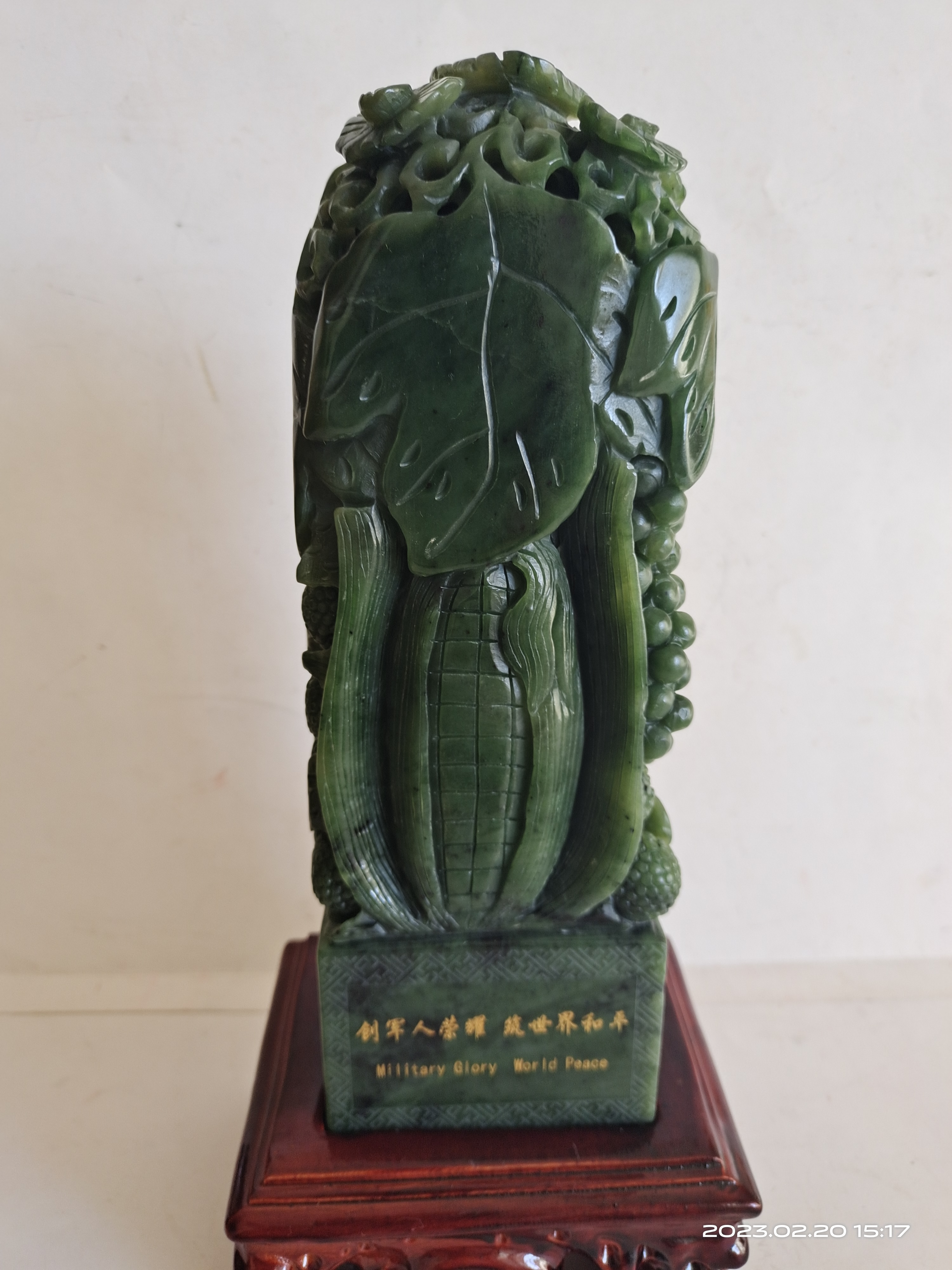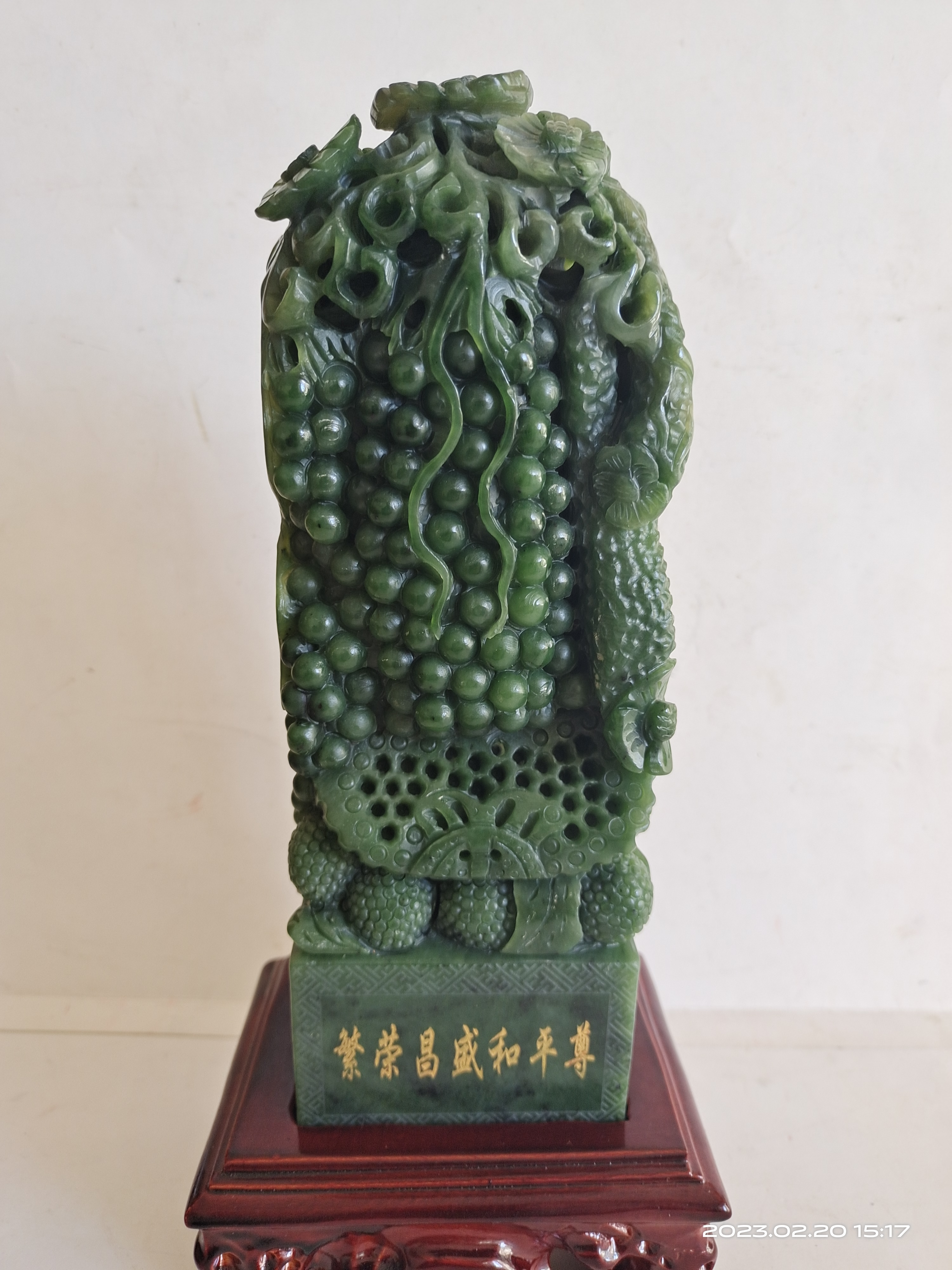 藏品名称:和田玉繁荣昌盛和平尊 参考价格:300000.00 藏品规格: 藏品款识: 藏品类别:微拍