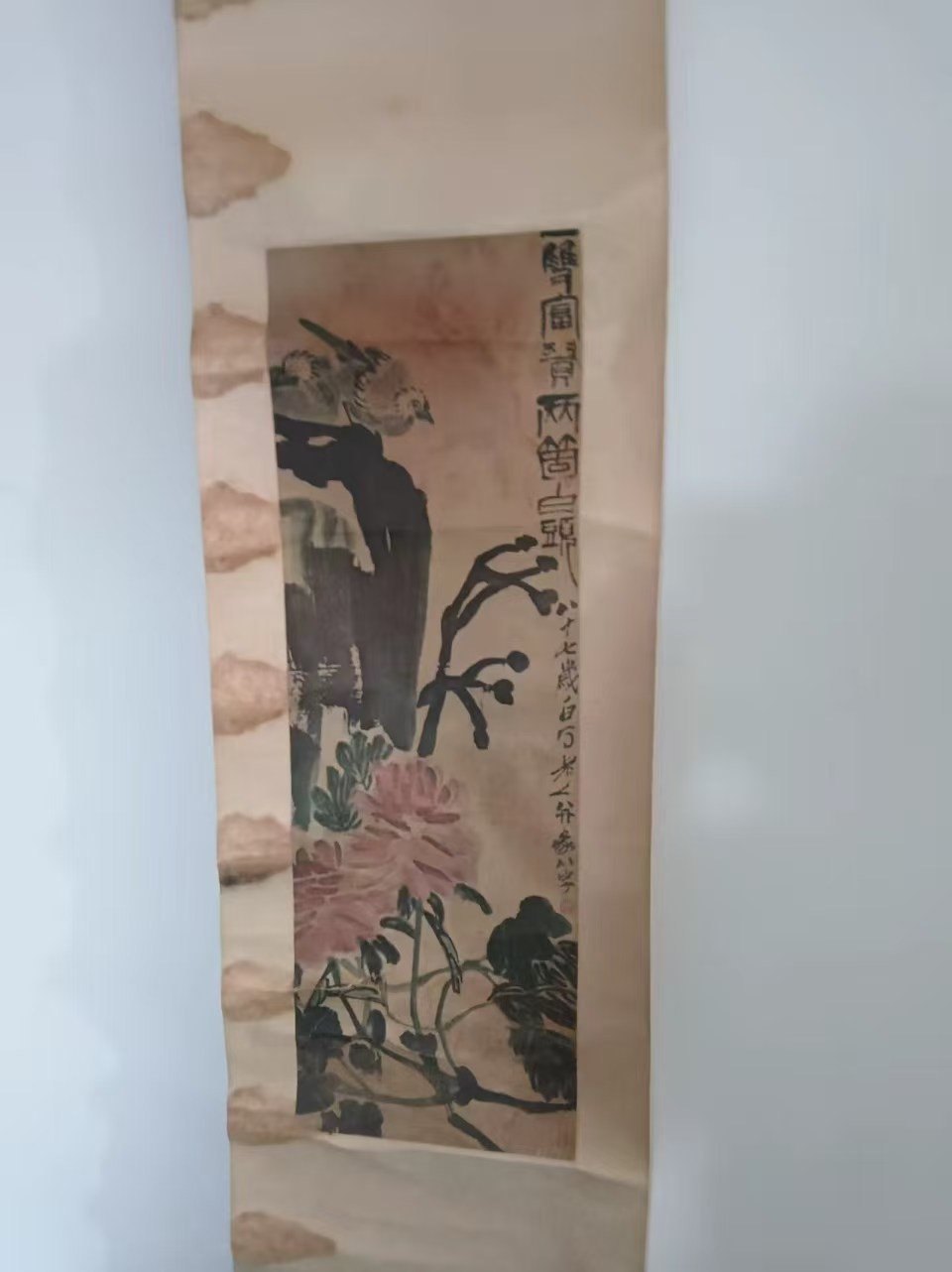 藏品名称:齐白石风格花鸟立轴画 参考价格:880000.00 藏品规格: 藏品款识: 藏品类别:微拍