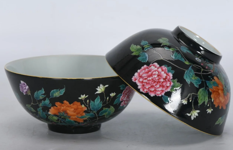 珐琅彩黑地花卉碗