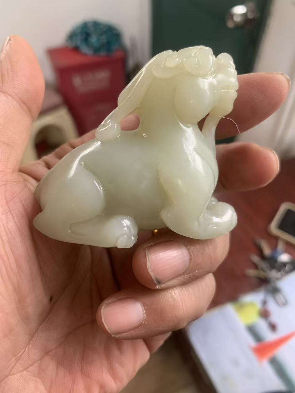 藏品名称:和田玉瑞兽 参考价格:120000.00 藏品规格: 藏品款识: 藏品类别:微拍