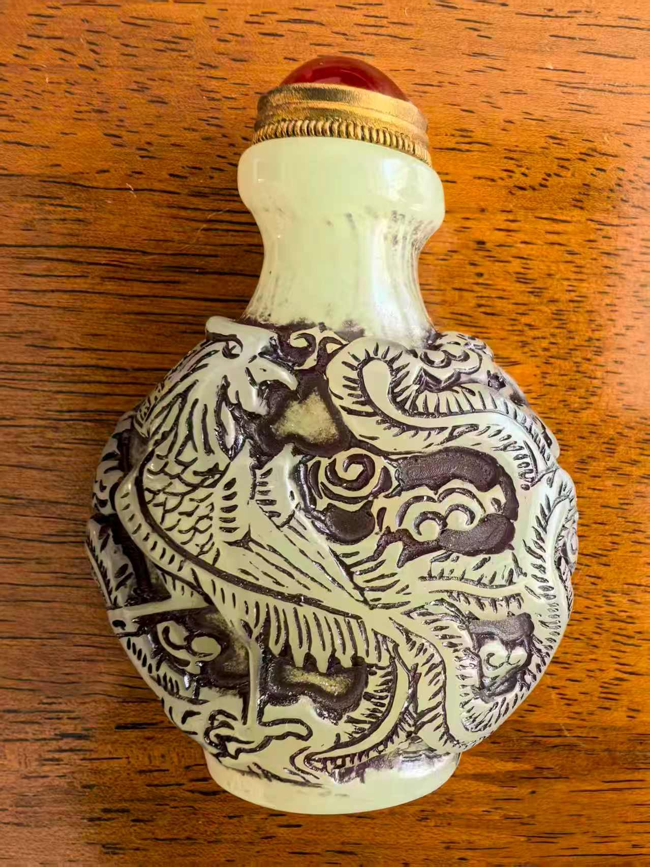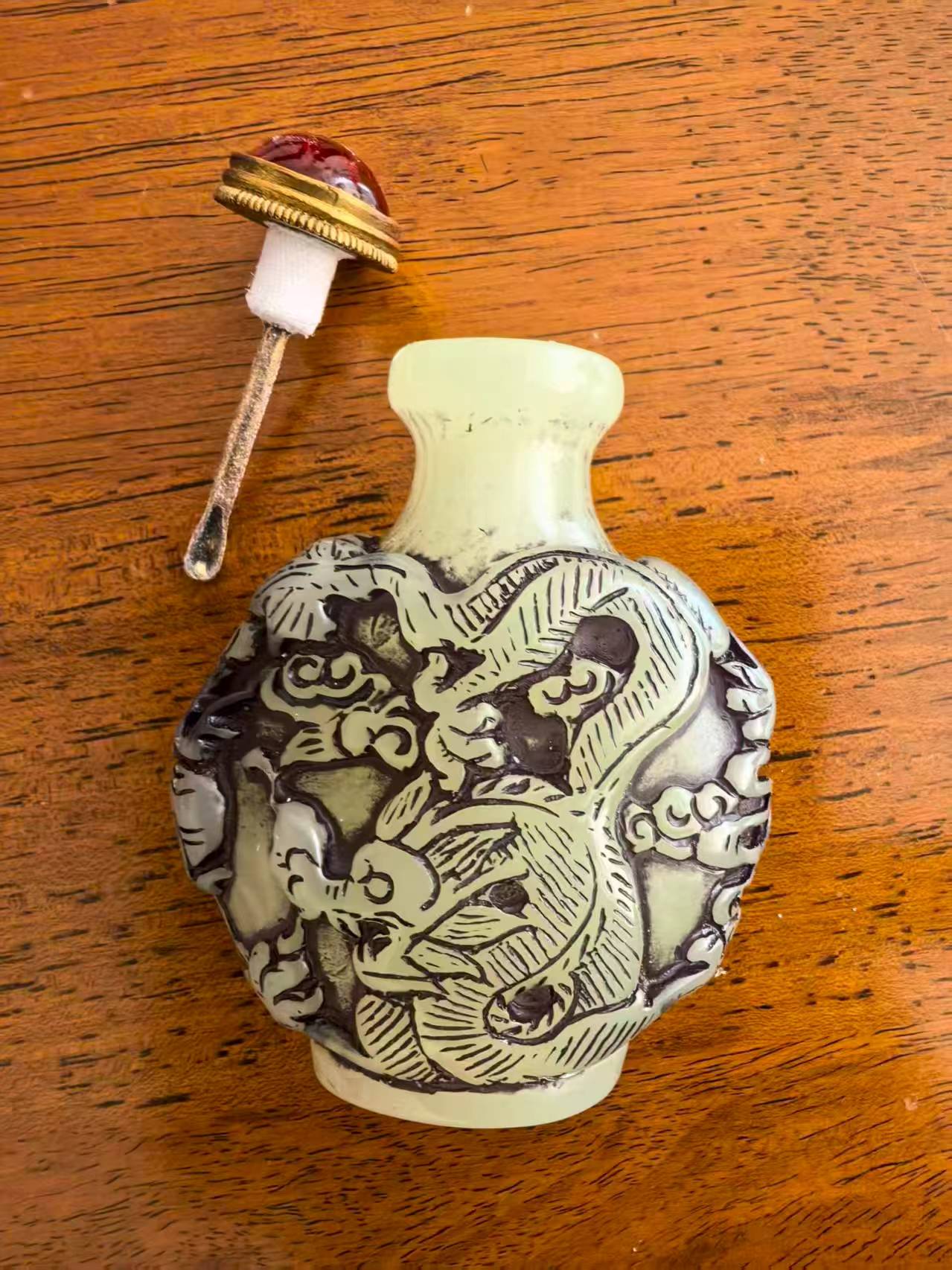 藏品名称:清乾隆龙凤纹鼻烟壶 参考价格:430000.00 藏品规格: 藏品款识: 藏品类别:微拍