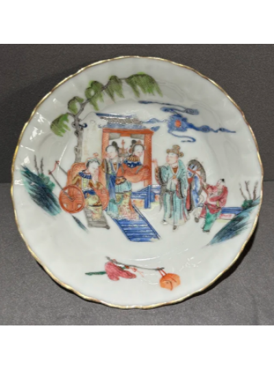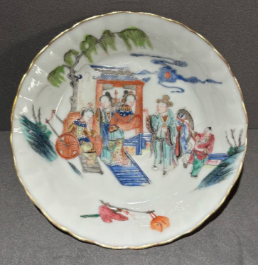 粉彩“长亭送别”图花瓣型盘