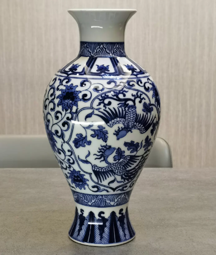 藏品名称:青花凤凰缠枝莲纹赏瓶 参考价格:860000.00 藏品规格: 藏品款识: 藏品类别:微拍
