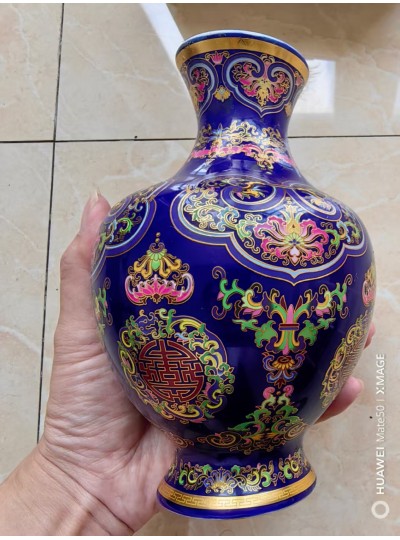 藏品名称:清代霁蓝釉描金赏瓶 参考价格:480000.00 藏品规格: 藏品款识: 藏品类别:微拍