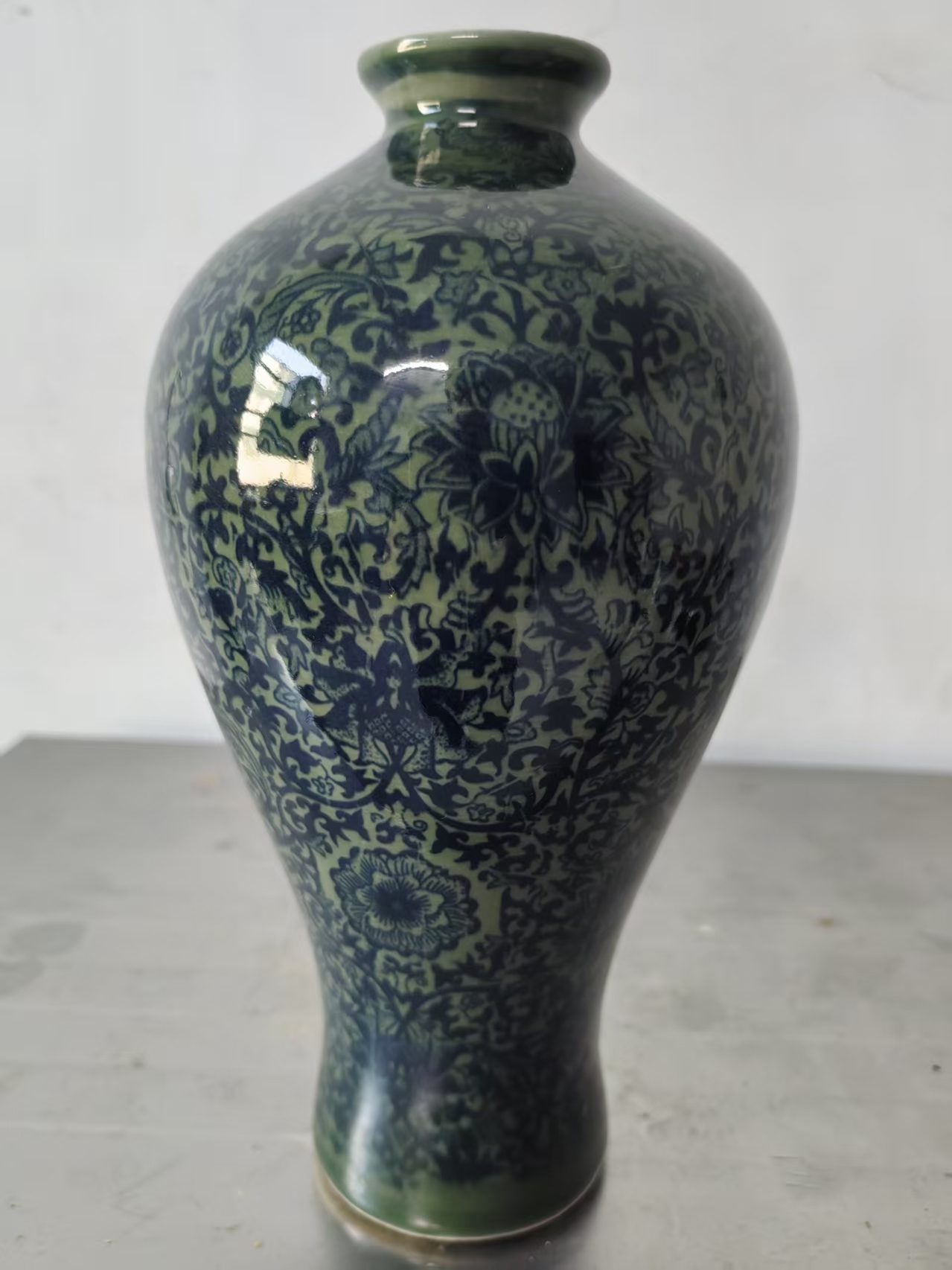 青绿釉青花缠枝纹梅瓶