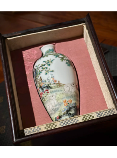 藏品名称:薄胎工笔丹桂兔子图莱菔瓶 参考价格:560000.00 藏品规格: 藏品款识: 藏品类别:微拍
