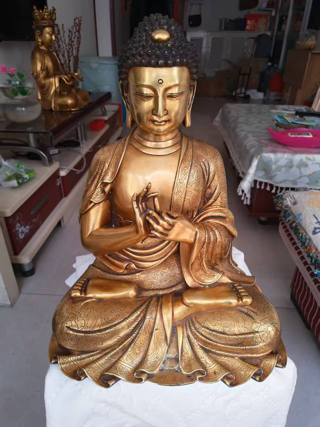 藏传 鎏金佛像高40厘米 宽23.5厘米 长32.5厘米 重量13千克