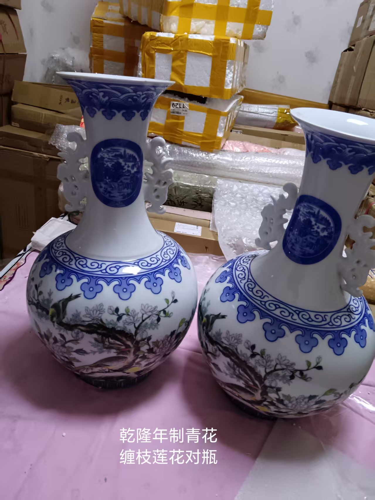 藏品名称:乾隆年制青花缠枝莲花对瓶 参考价格:360000.00 藏品规格: 藏品款识: 藏品类别:微拍