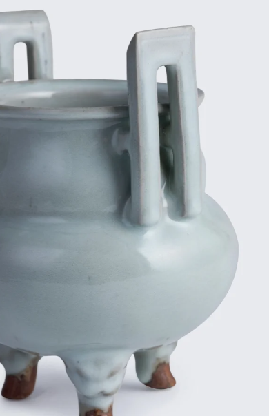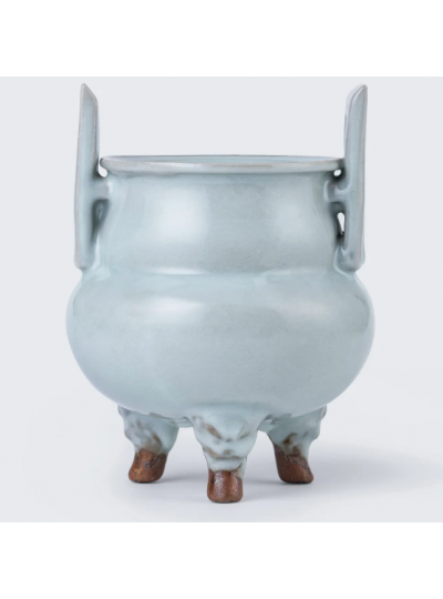 月白釉冲耳三足炉