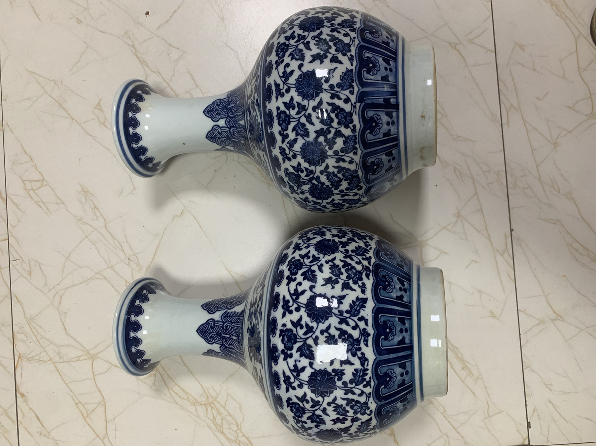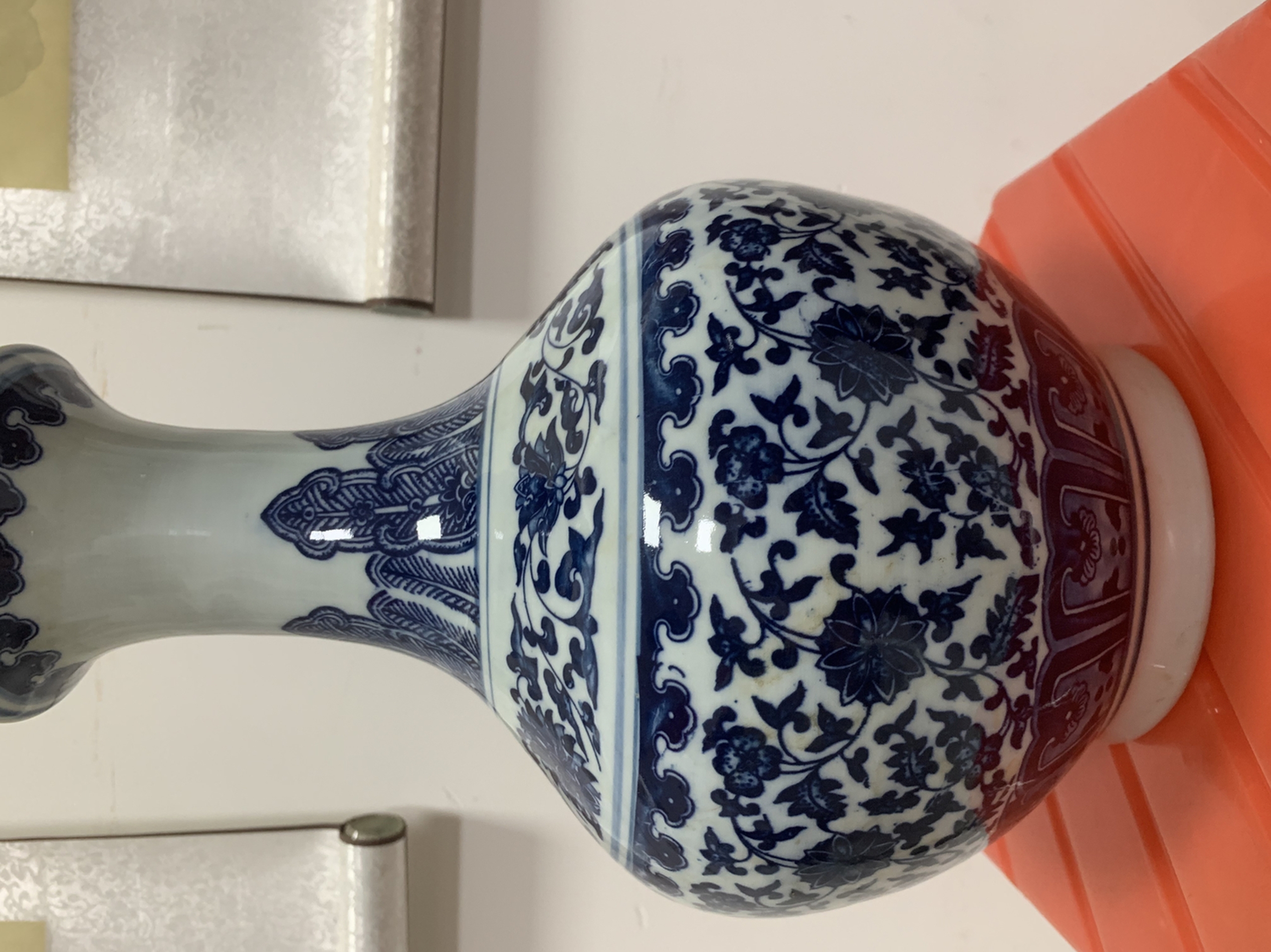 藏品名称:青花缠枝莲纹赏瓶 参考价格:2000000.00 藏品规格: 藏品款识: 藏品类别:微拍