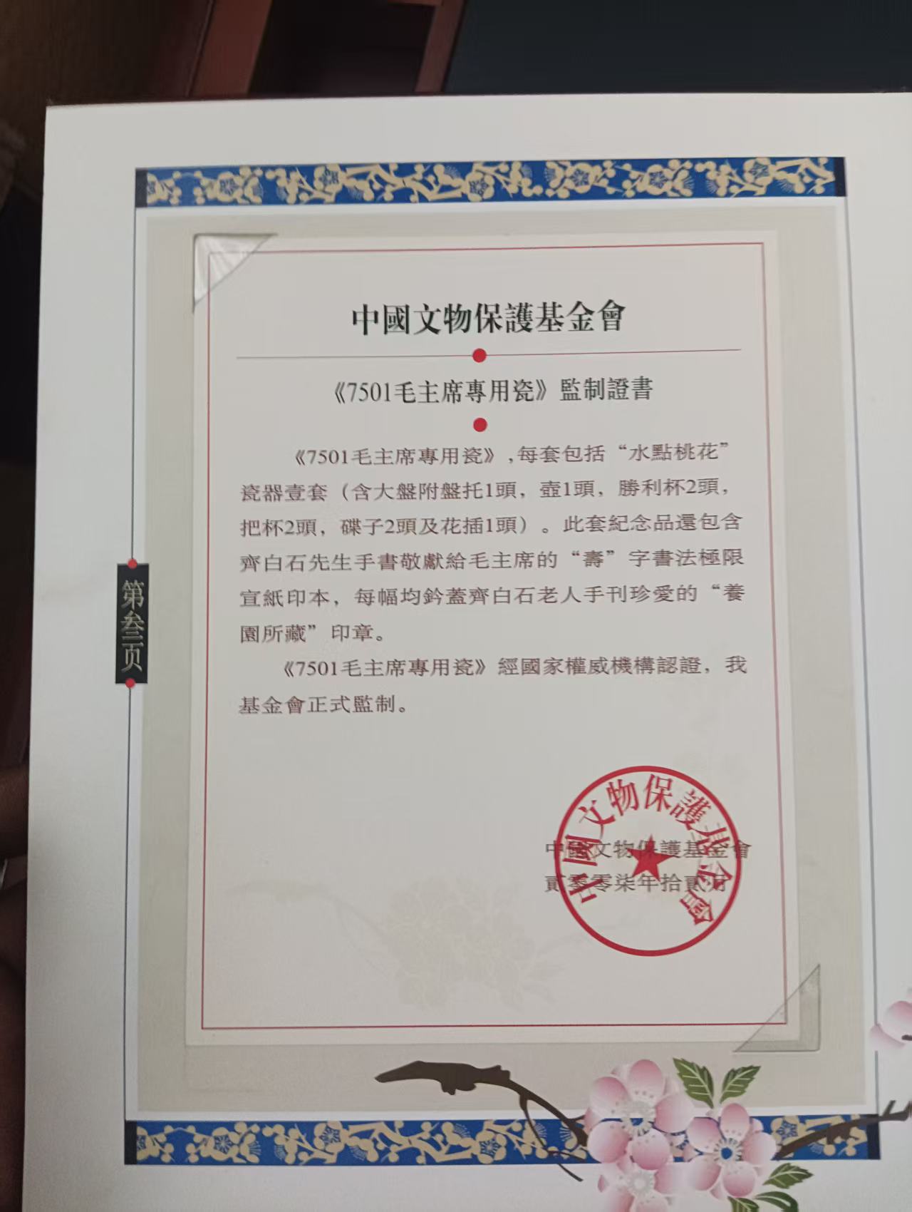 藏品名称:景德镇《7501》毛瓷一套 参考价格:200000.00 藏品规格: 藏品款识:景德镇《7501》毛瓷一套 藏品类别:瓷器