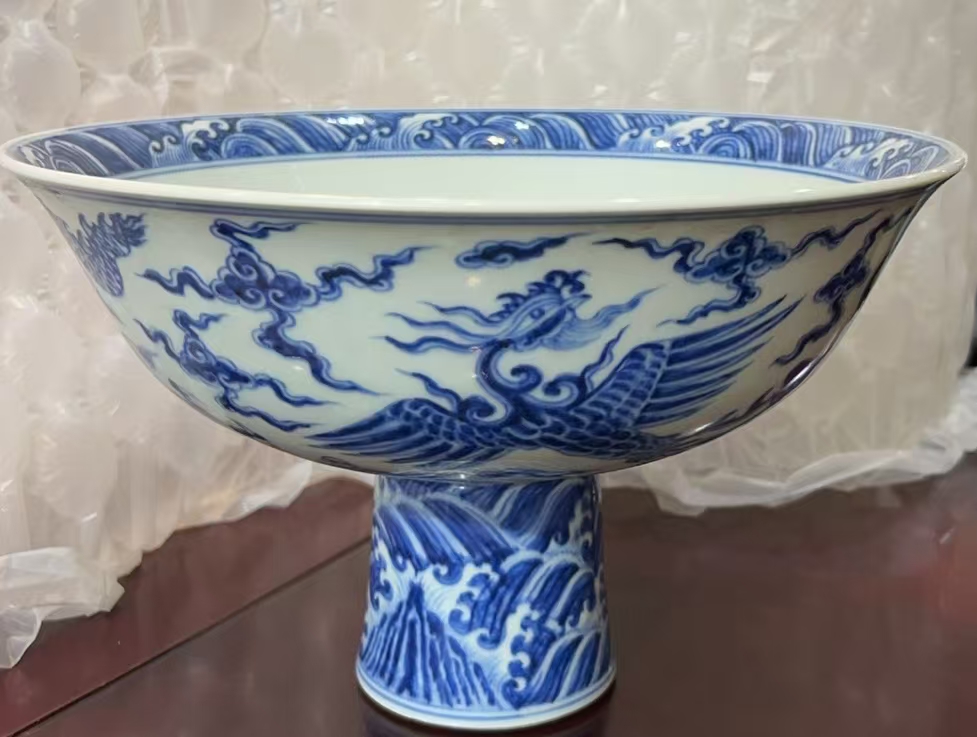藏品名称:大明宣德年制青花高脚碗 参考价格:680000.00 藏品规格: 藏品款识:大明宣德年制青花高脚碗 藏品类别:瓷器