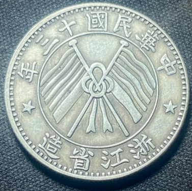 中华民国十三年浙江省造双旗贰毫银币