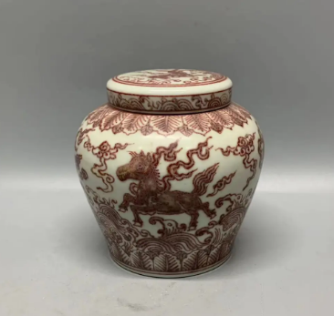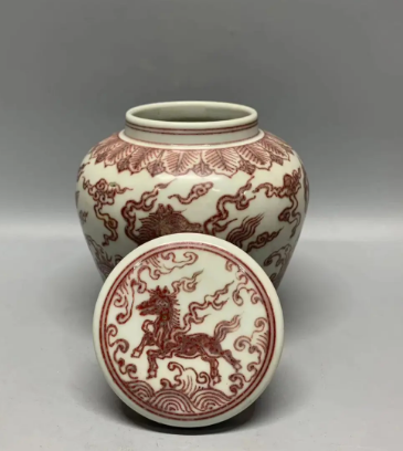 藏品名称:釉里红天字罐 参考价格:870000.00 藏品规格: 藏品款识: 藏品类别:微拍