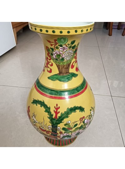 大清康熙年制款 皇地粉彩花夲尊瓶 38.6✖️13.8