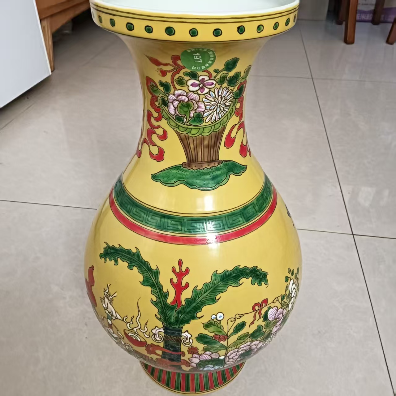 藏品名称:大清康熙年制款 皇地粉彩花夲尊瓶 38.6✖️13.8 参考价格:160000.00 藏品规格: 藏品款识: 藏品类别:微拍