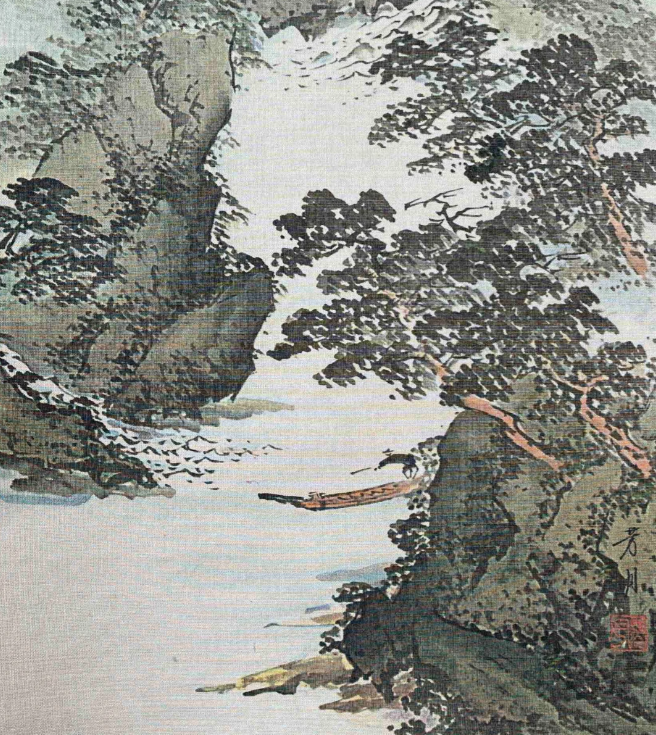 芳月作 青山绿水图