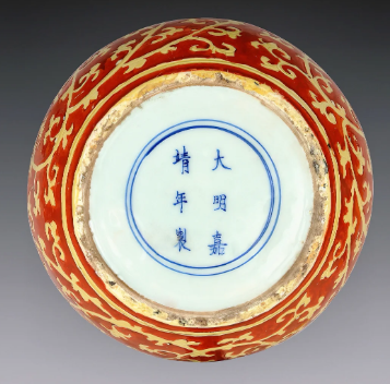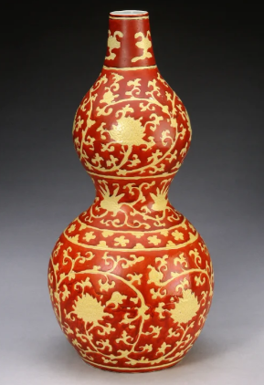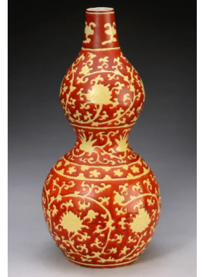 明· 嘉靖红地黄彩缠枝莲纹葫芦瓶