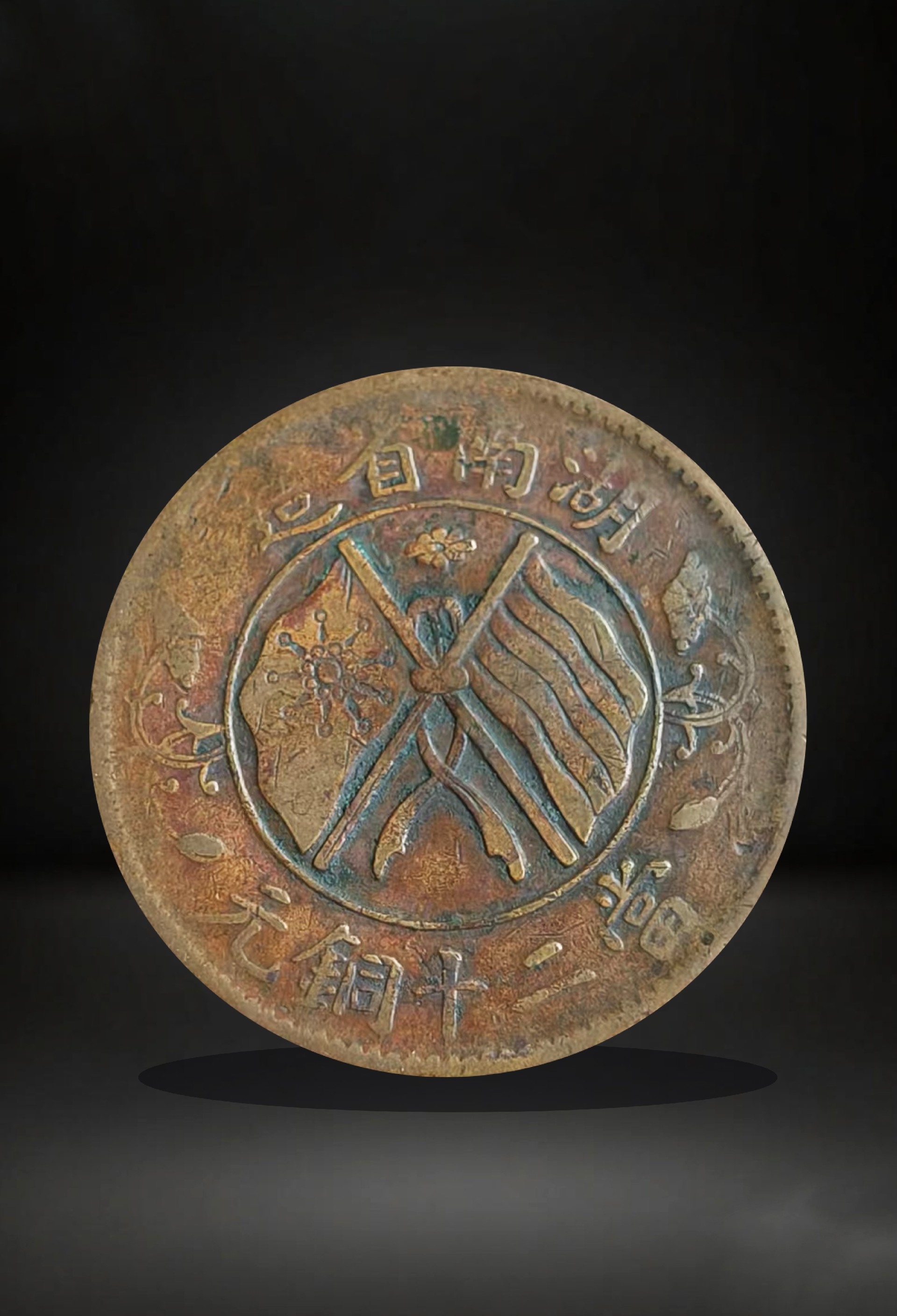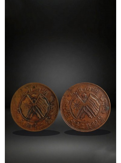 藏品名称:湖南省造双旗币两枚 参考价格:246000.00 藏品规格: 藏品款识: 藏品类别:微拍