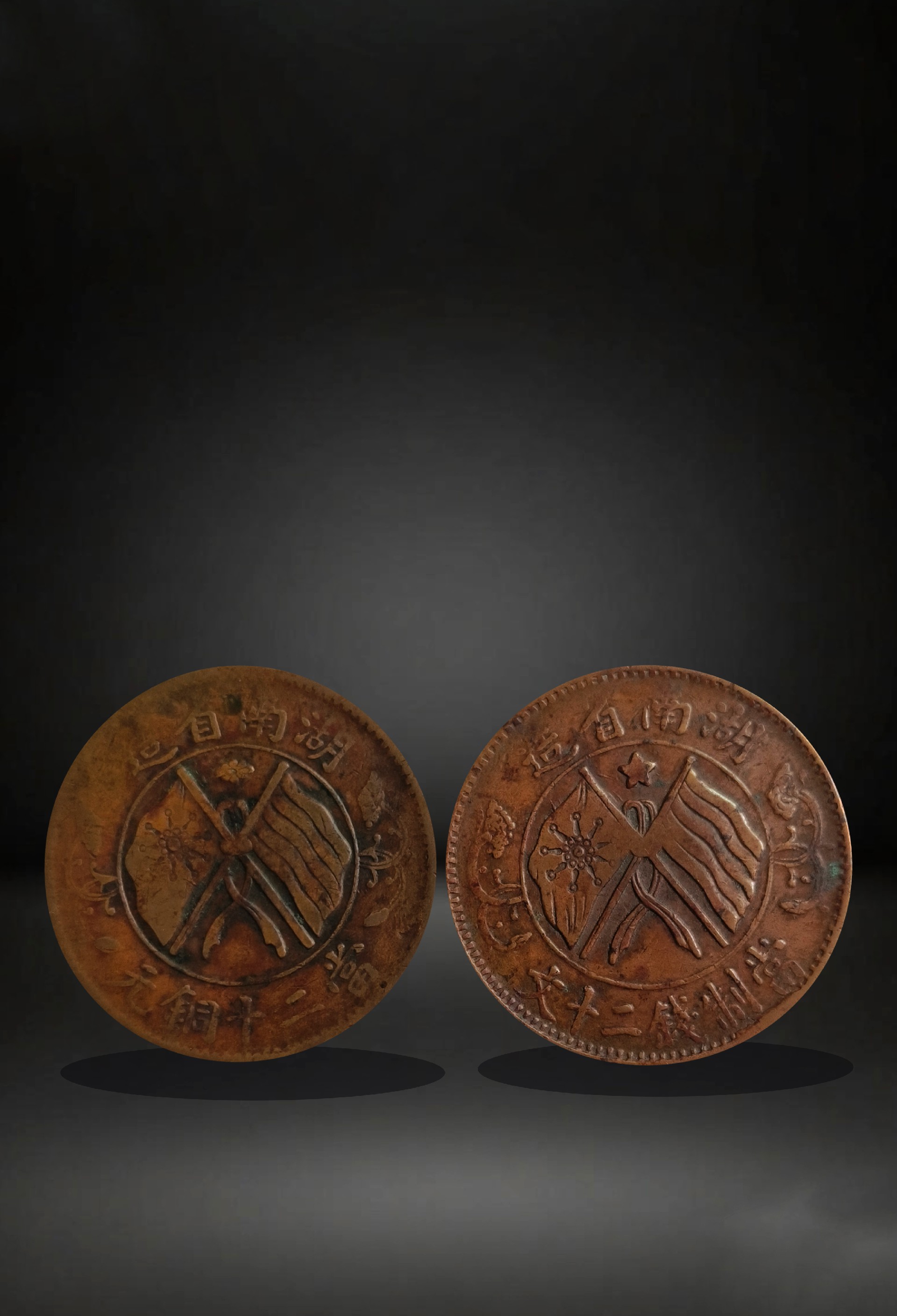 湖南省造双旗币两枚