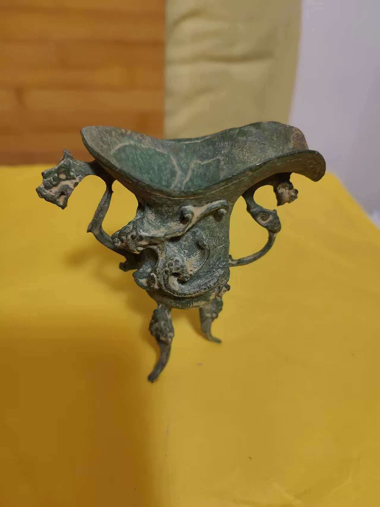 藏品名称:三足四龙爵杯 参考价格:2200000.00 藏品规格: 藏品款识: 藏品类别:微拍