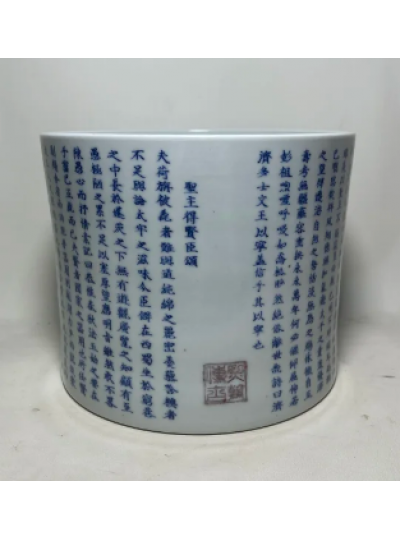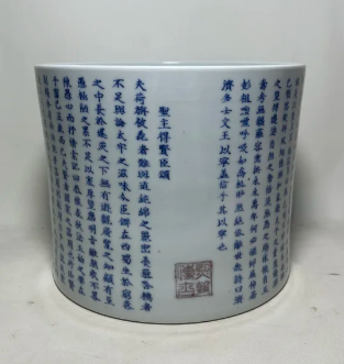 清康熙青花釉里红圣主得贤臣颂笔筒