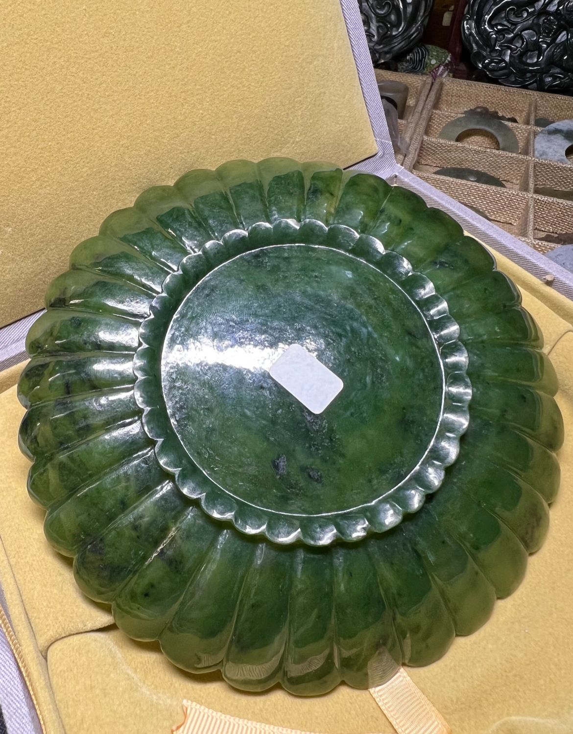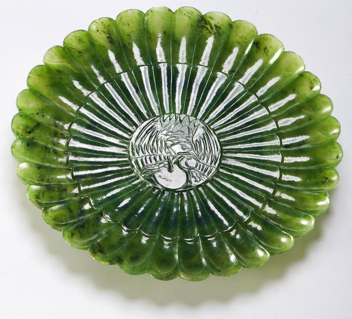 藏品名称:清代中期碧玉痕都斯坦玉盘 参考价格:800000.00 藏品规格: 藏品款识: 藏品类别:微拍