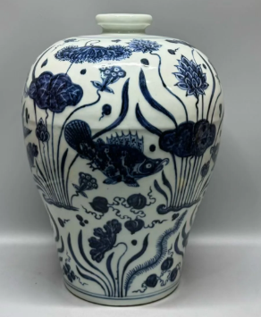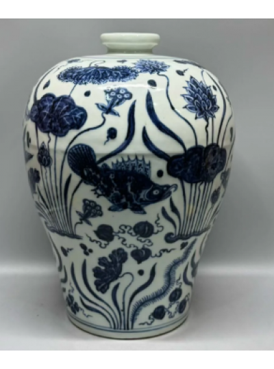 藏品名称:明代青花鱼藻梅瓶 参考价格:830000.00 藏品规格: 藏品款识: 藏品类别:微拍