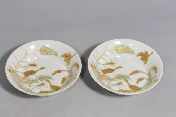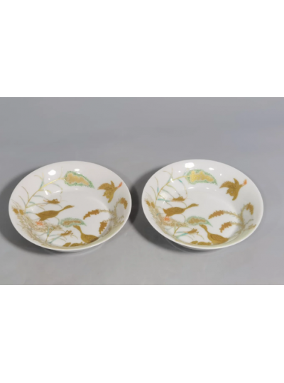 藏品名称:粉彩描金大雁芦苇小碟子一对 参考价格:550000.00 藏品规格: 藏品款识: 藏品类别:微拍