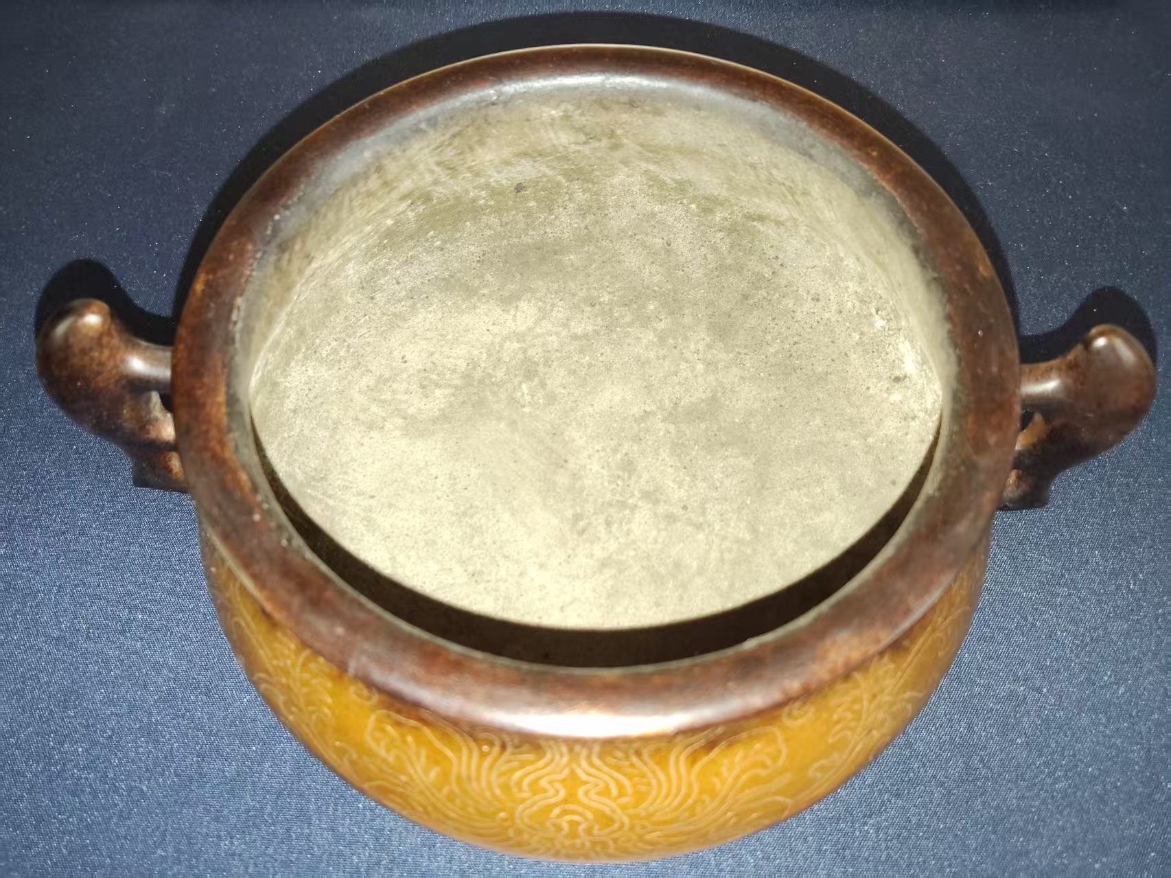 藏品名称:嵌银丝双鱼耳铜炉 参考价格:800000.00 藏品规格: 藏品款识: 藏品类别:微拍