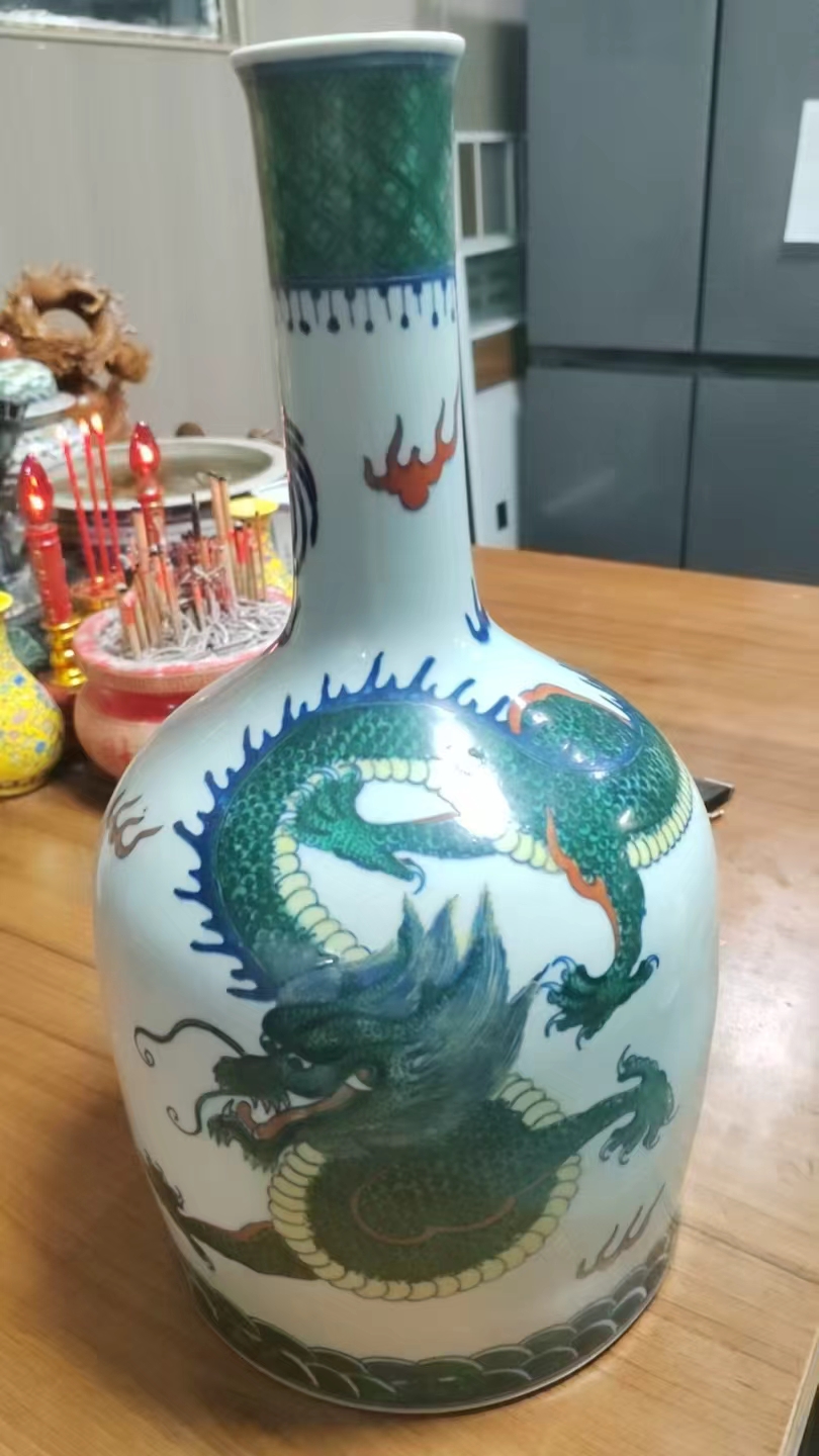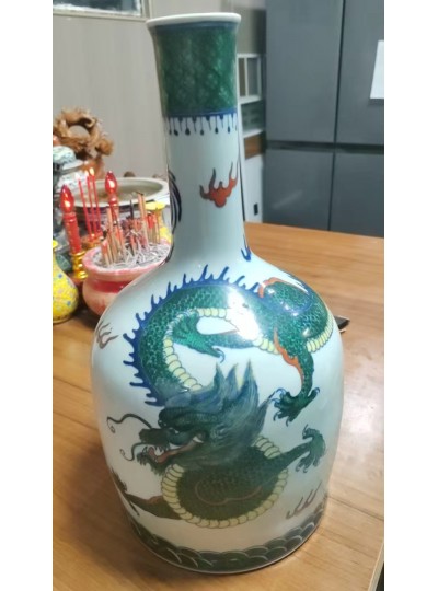 藏品名称:大清康熙年制五彩龙纹瓶 参考价格:870000.00 藏品规格: 藏品款识: 藏品类别:微拍