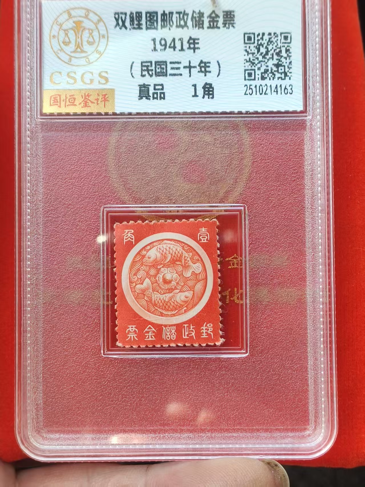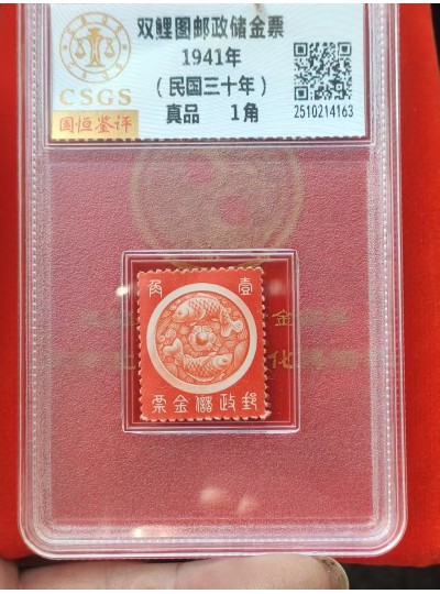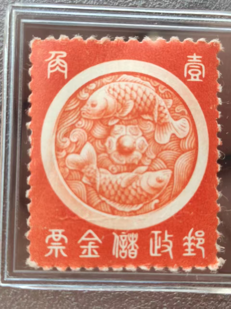藏品名称:民国 双鱼金邮票 参考价格:350000.00 藏品规格: 藏品款识:民国 双鱼金邮票 藏品类别:古现代藏品
