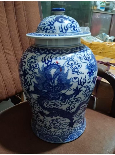 藏品名称:大清康熙年制青花五龙纹将军罐 参考价格:10000000.00 藏品规格: 藏品款识: 藏品类别:微拍