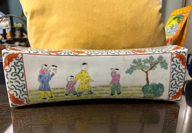 婴戏图粉彩瓷枕