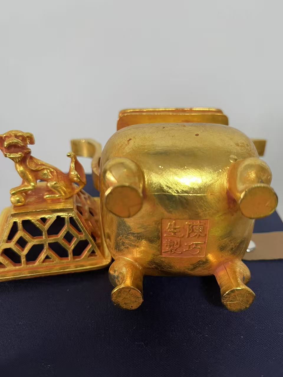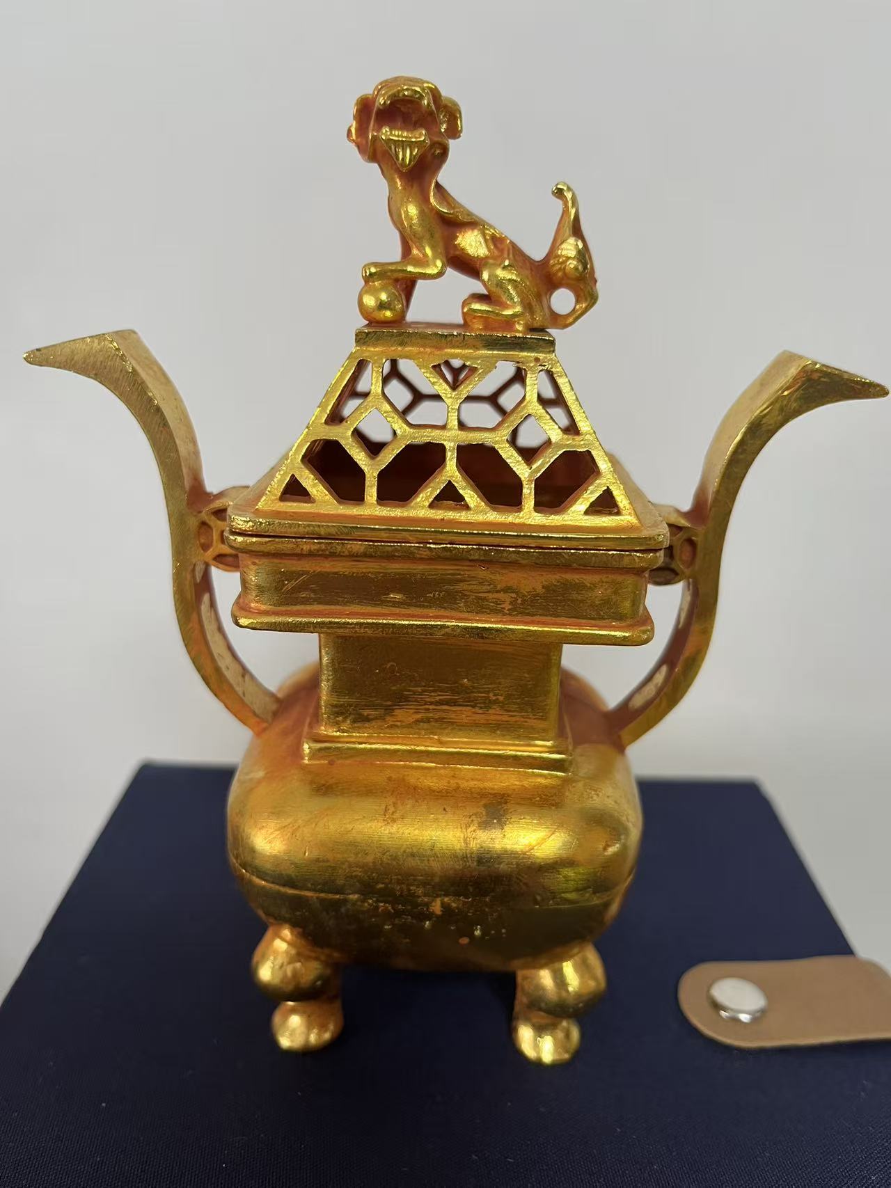 藏品名称:通体金胎金香炉 参考价格:680000.00 藏品规格: 藏品款识: 藏品类别:微拍