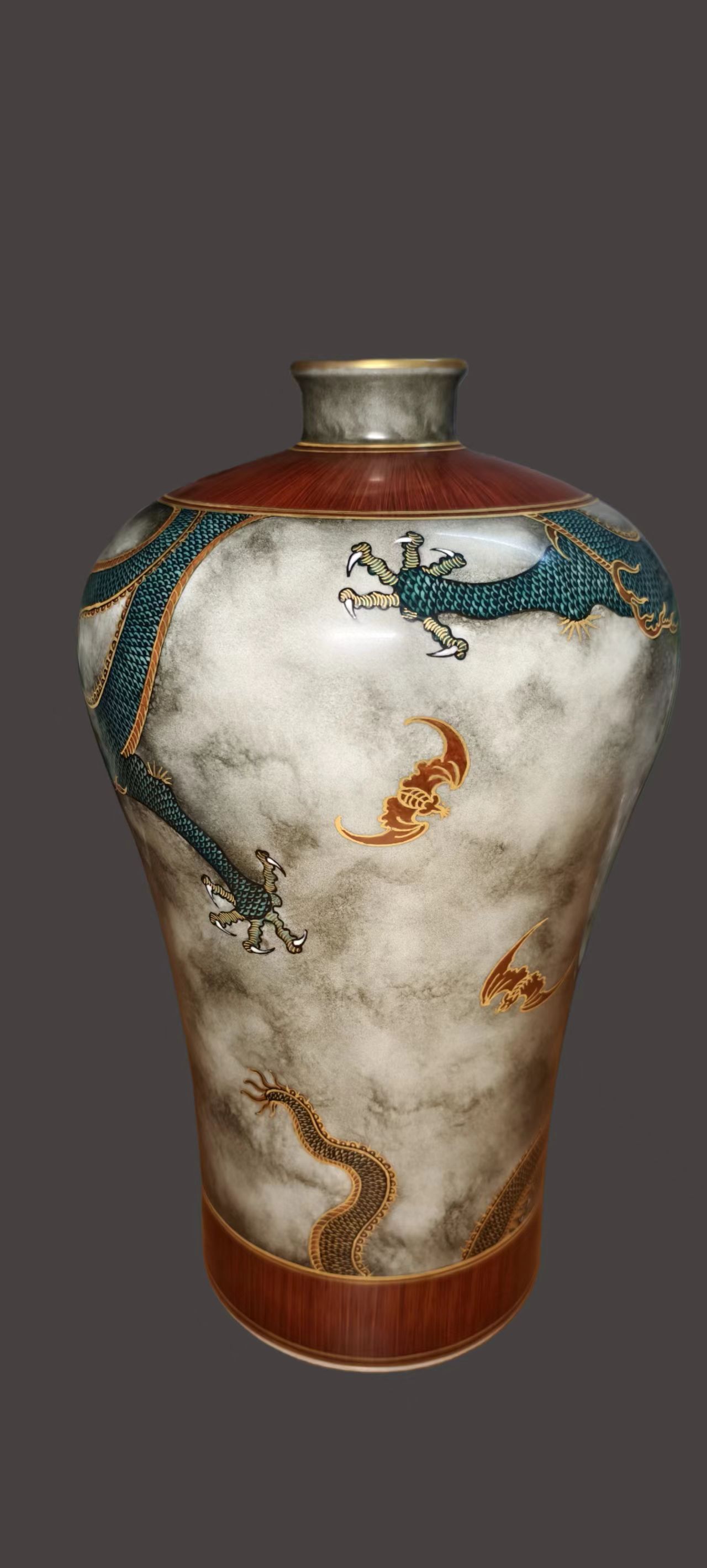 藏品名称:清乾隆墨彩描金云龙纹梅瓶 参考价格:680000.00 藏品规格: 藏品款识:清乾隆墨彩描金云龙纹梅瓶 藏品类别:瓷器