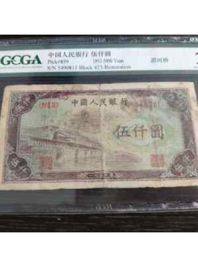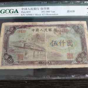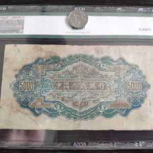 藏品名称:第一套人民币伍仟圆 参考价格:150000.00 藏品规格: 藏品款识: 藏品类别:微拍