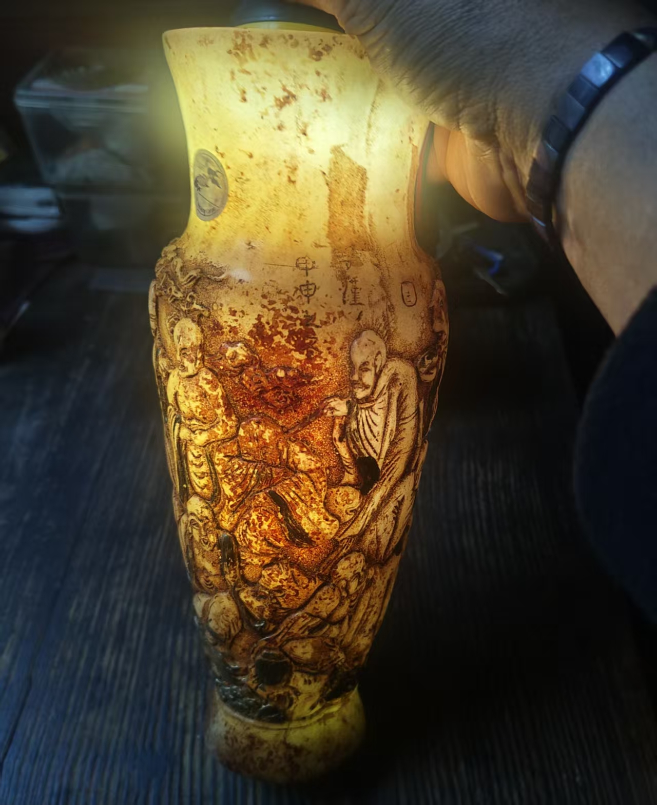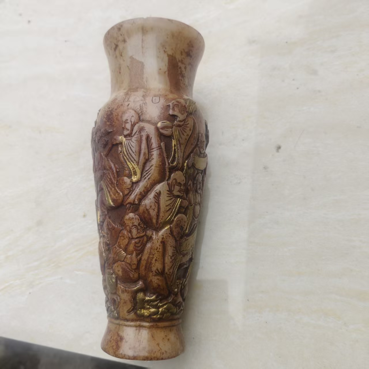 藏品名称:高古玉十八罗汉描金赏瓶 参考价格:360000.00 藏品规格: 藏品款识: 藏品类别:微拍