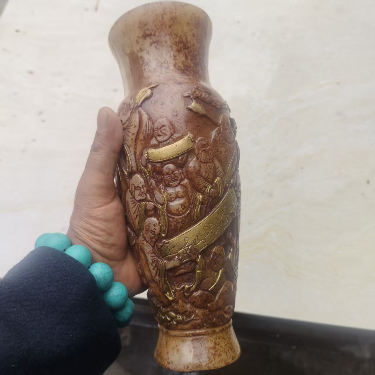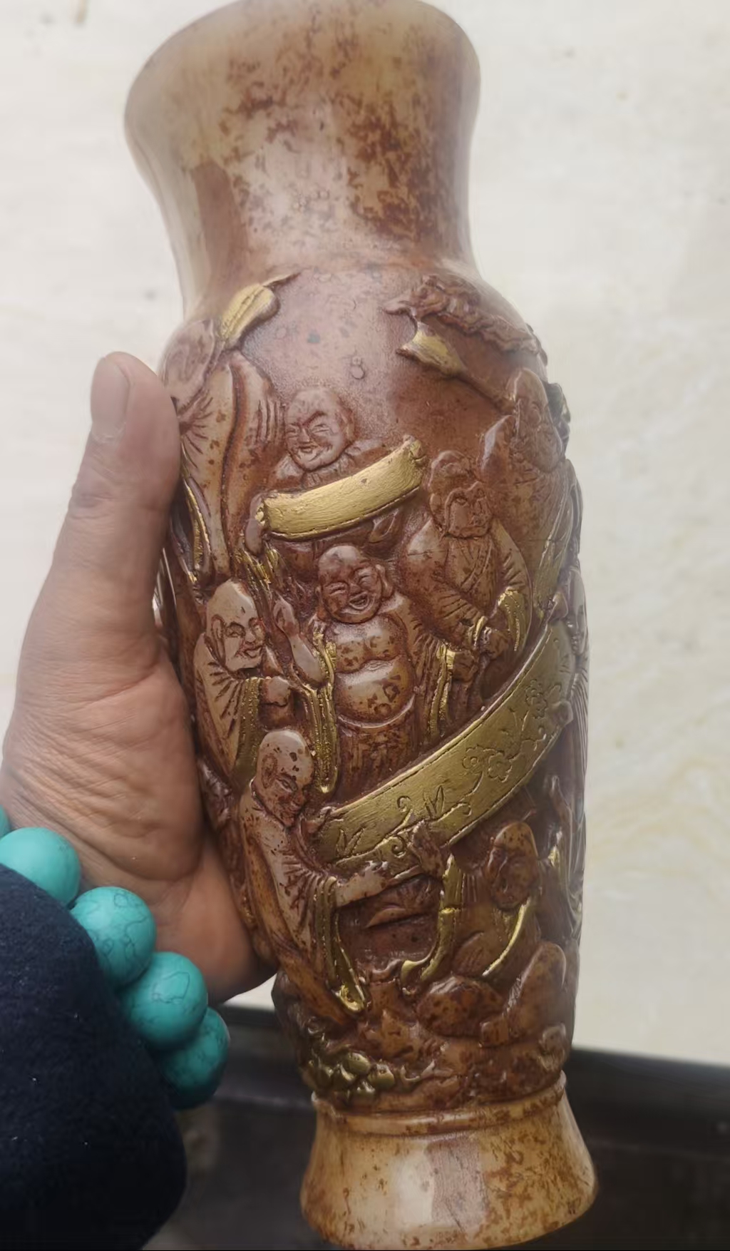 高古玉十八罗汉描金赏瓶