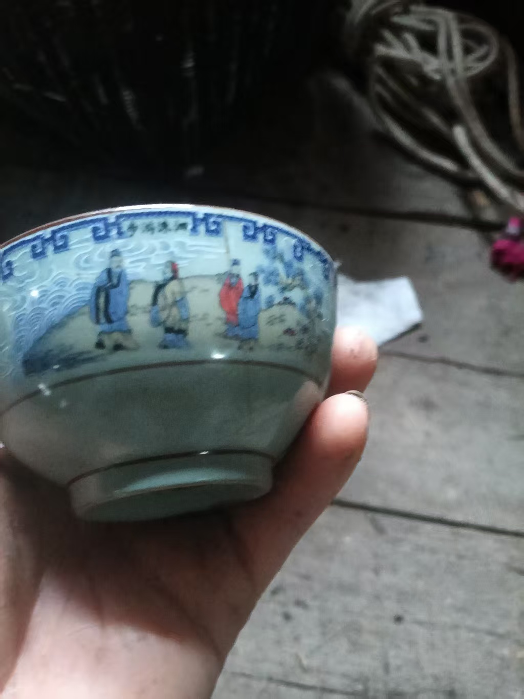 藏品名称:青瓷人物故事金钟碗 参考价格:20000.00 藏品规格: 藏品款识: 藏品类别:微拍