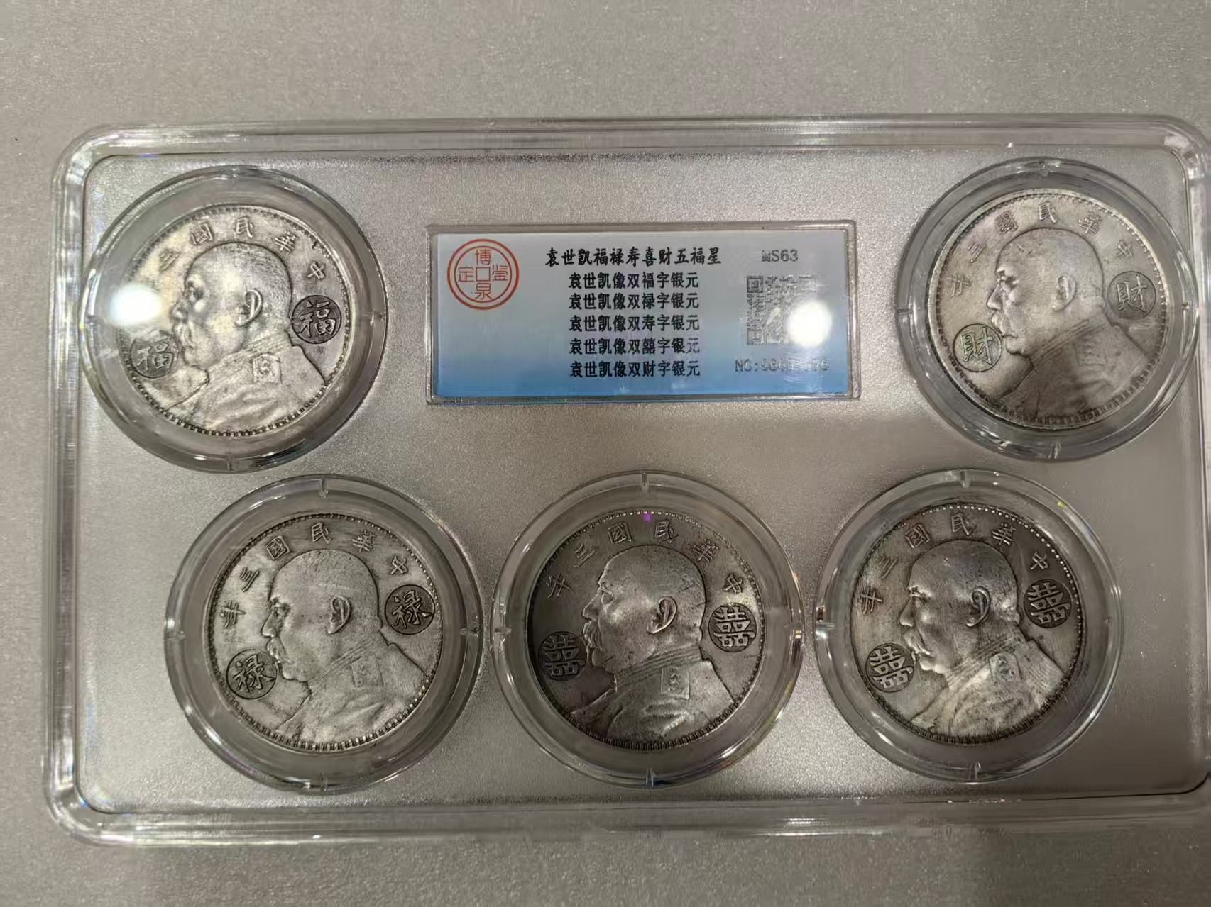 藏品名称:民国袁像五福银币集 参考价格:450000.00 藏品规格: 藏品款识: 藏品类别:微拍